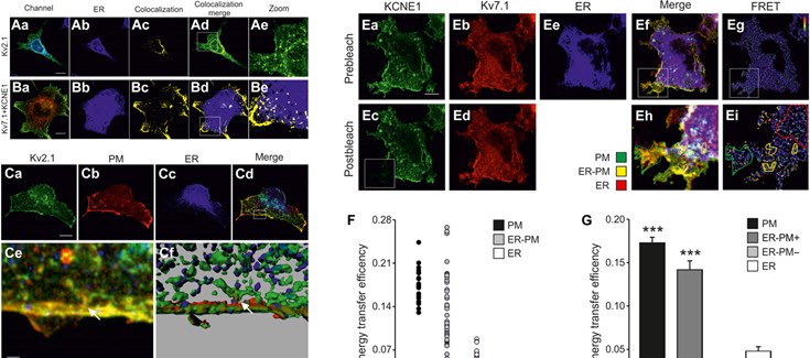 El nuevo estudio describe cómo el canal Kv7.1 (KCNQ1) y su subunidad reguladora KCNE1 se asocian en dominios muy específicos del retículo endoplasmático, un sistema formado por una compleja red de membranas y relacionado también con la síntesis y el transporte de proteínas.