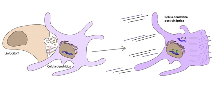 Los investigadores han descubierto que, tras producirse una sinapsis inmune, las células dendríticas son más “eficientes” en su migración a los ganglios linfáticos, donde se generan la mayoría de procesos para la activación de la respuesta inmune específica o adaptativa.